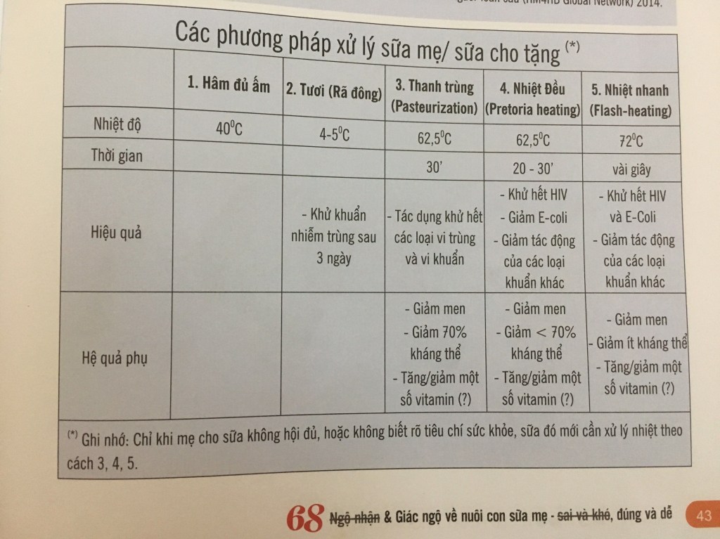 Nếu sữa mẹ khác không đảm bảo các điểm trên thì phải thanh trùng trước khi sử dụng theo một trong số những chế độ như hình đính kèm😄